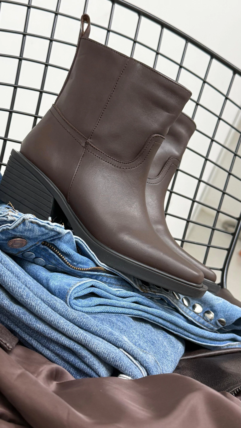 Texana JONES punta cuadrada en cuero con base TR: Elegancia y comodidad en cada paso. Con su diseño de punta cuadrada, esta texana combina la sofisticación del cuero genuino con la resistencia y liviandad de su base TR. Ideal para quienes buscan estilo y durabilidad en un calzado versátil. Perfecta para cualquier ocasión, su horma normal garantiza un ajuste cómodo y seguro